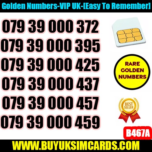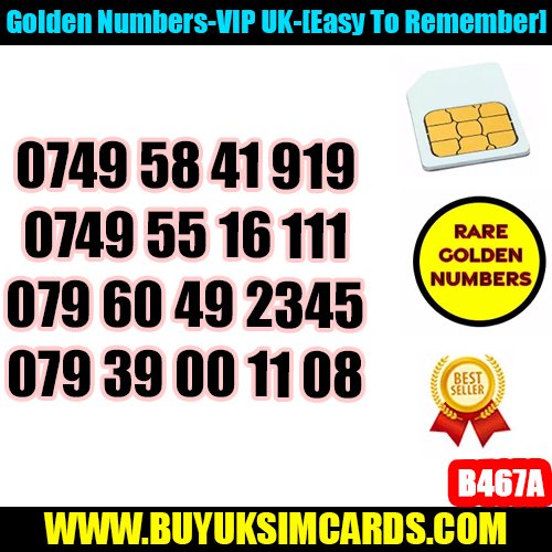 Golden Numbers VIP UK EE Network SIM Card – Easy to Remember Numbers- B467A